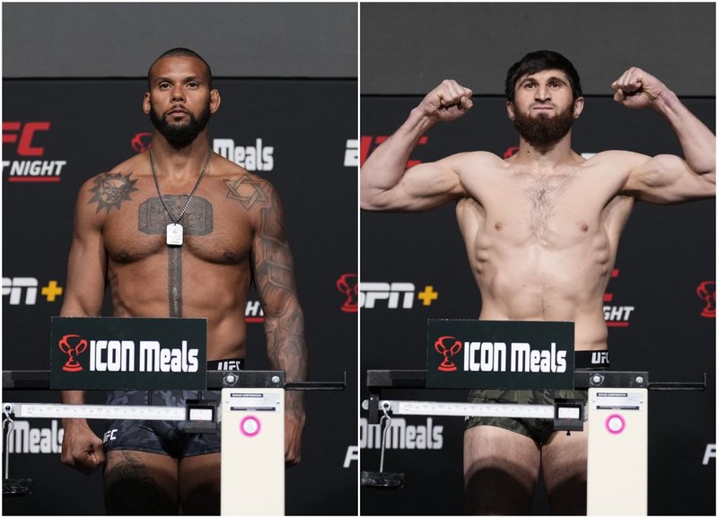 На кантара Сантос закова 93.21 килограма, а Магомед тежеше 92.98 килограма. В подглавната битка Марлон Мораеш ще мери сили със Сонг Ядонг. Марлон беше с тегло 61.68 килограма, а Ядонг закова 61.46 килограма.