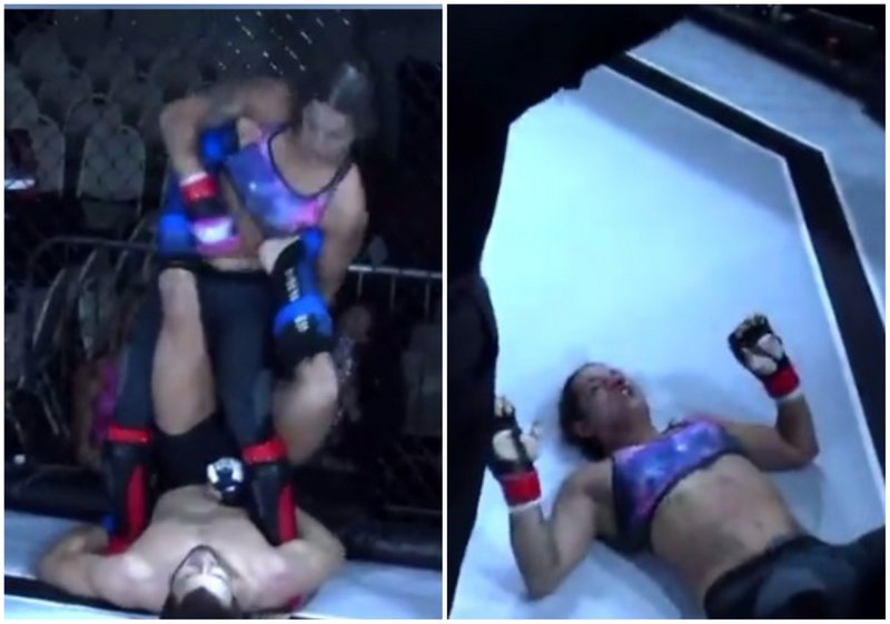 транссексуална жена след кроше, а реферът видя достатъчно и спря битката в средата на първия рунд.