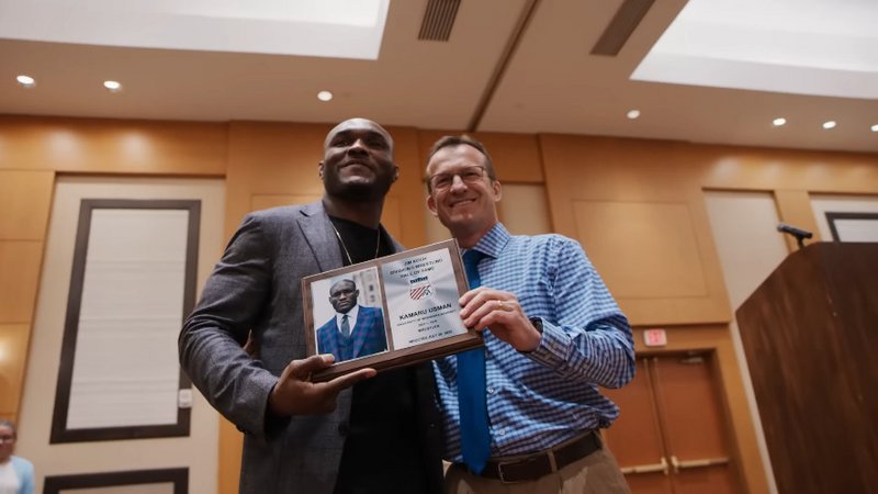 Шампионът на UFC в полусредна категория Камару Усман вече е горд член на Залата на славата на Националната асоциация на треньорите по борба. Преди „Нигерийският кошмар“ да доминира в полусредна категория на UFC, той беше шампион по борба на NCAA Division II от Университета на Небраска в Kearney.Камару