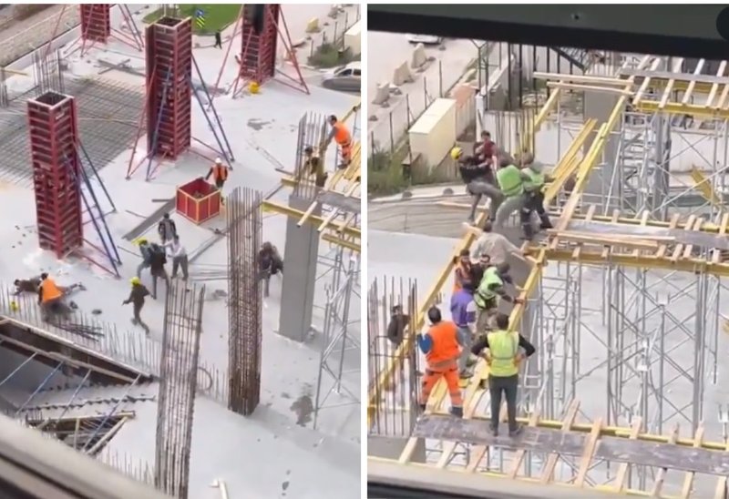Странно видео, обиколило социалните мрежи, показва див бой между строителни работници в Турция.