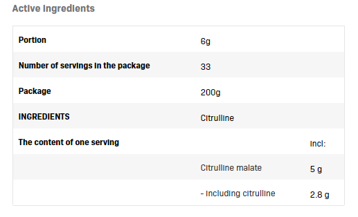 Функция и приложение на цитрулина: Цитрулин е ендогенна аминокиселина, която не изгражда протеини, тя се образува в човешкото тяло от орнитин. Цитрулинът се съдържа естествено в храни като дини. Адекватната наличност на цитрулин е от съществено значение за правилното протичане на урейния цикъл, а ефективният му курс позволява елиминирането на страничен продукт от метаболизма на аминокиселините - амоняк, който е от допълнително значение при високо протеиновите диети. Цитрулинът също е предшественик на аргинин, аминокиселина, от която се произвежда азотен оксид, както и метаболит на промени, протичащи с негово участие. По този начин неговият потенциал и възможността да се използва като добавка са доста широки. За кого е тази добавка? Цитрулин е особено подходящ за хора, които се подлагат на особено интензивни тренировки, като вдигане на тежести и спринтове. Цитрулин малат може да се използва заедно с таурин за постигане на отличен ефект за напомпване и подобряване на мускулатурата на тялото. Начин на употреба: Разтворете една доза от 6g (1 лъжичка) в 250 ml вода и консумирайте преди тренировка.