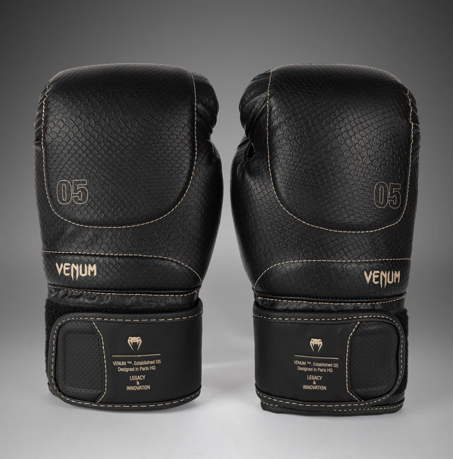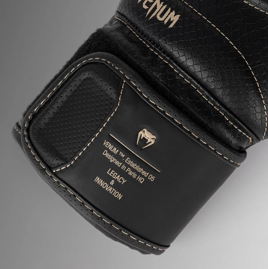 Бежовите шевове следват линиите на анатомичната конструкция на ръкавицата за фин контрастен ефект. Междувременно текстурирани люспи се разпростират по повърхността - напомняне да удряте силно и бързо с Venum.