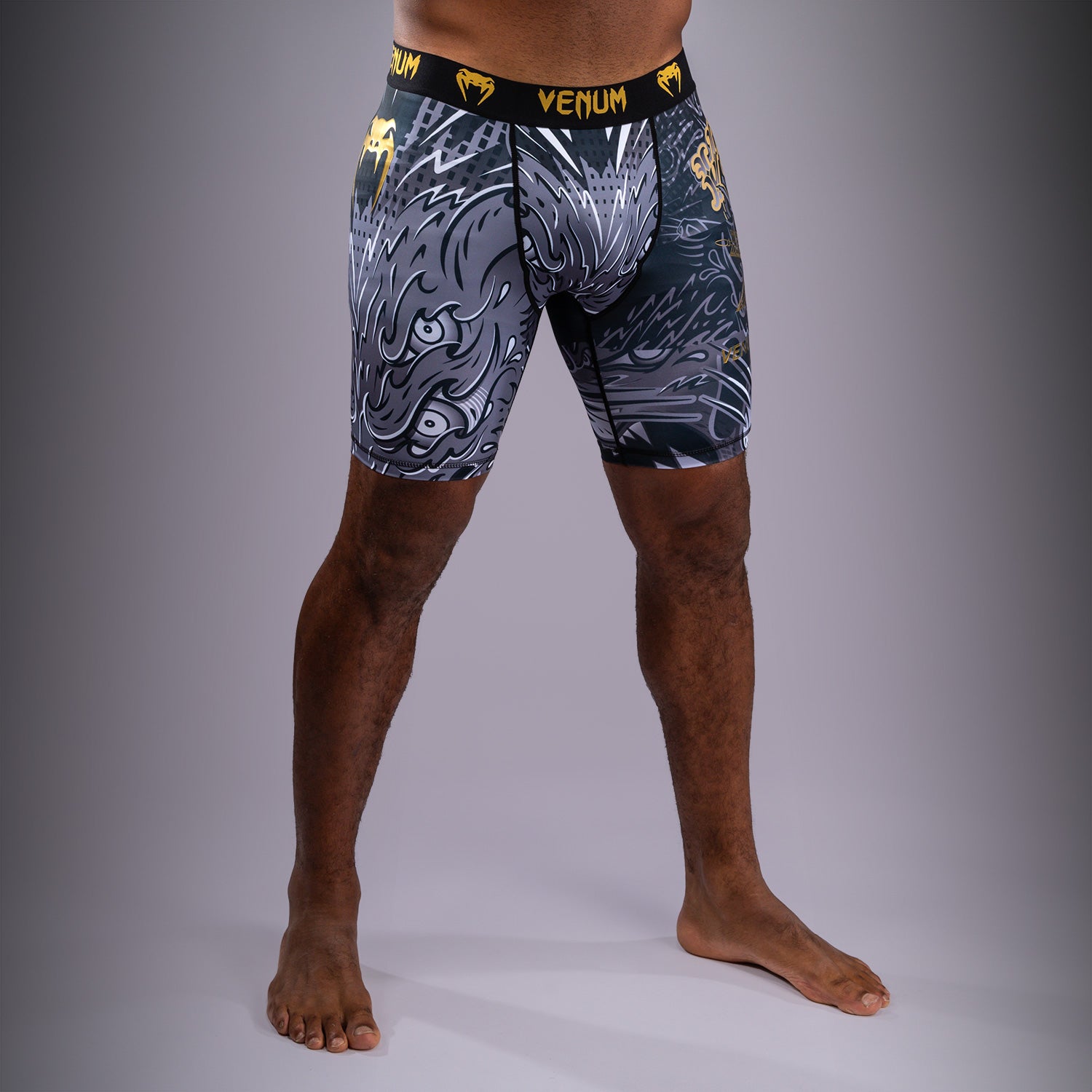 Шортите Venum Wolf Atak Vale Tudo са компресионни шорти до средата на бедрото, проектирани да издържат на редовни тренировки. Тъканта е лека и осигурява комфортен ефект на втора кожа". Компресионната тъкан може да подпомогне мускулното възстановяване по време на и след тренировка. Носете тези шорти самостоятелно или под бойни шорти или BJJ ги."
