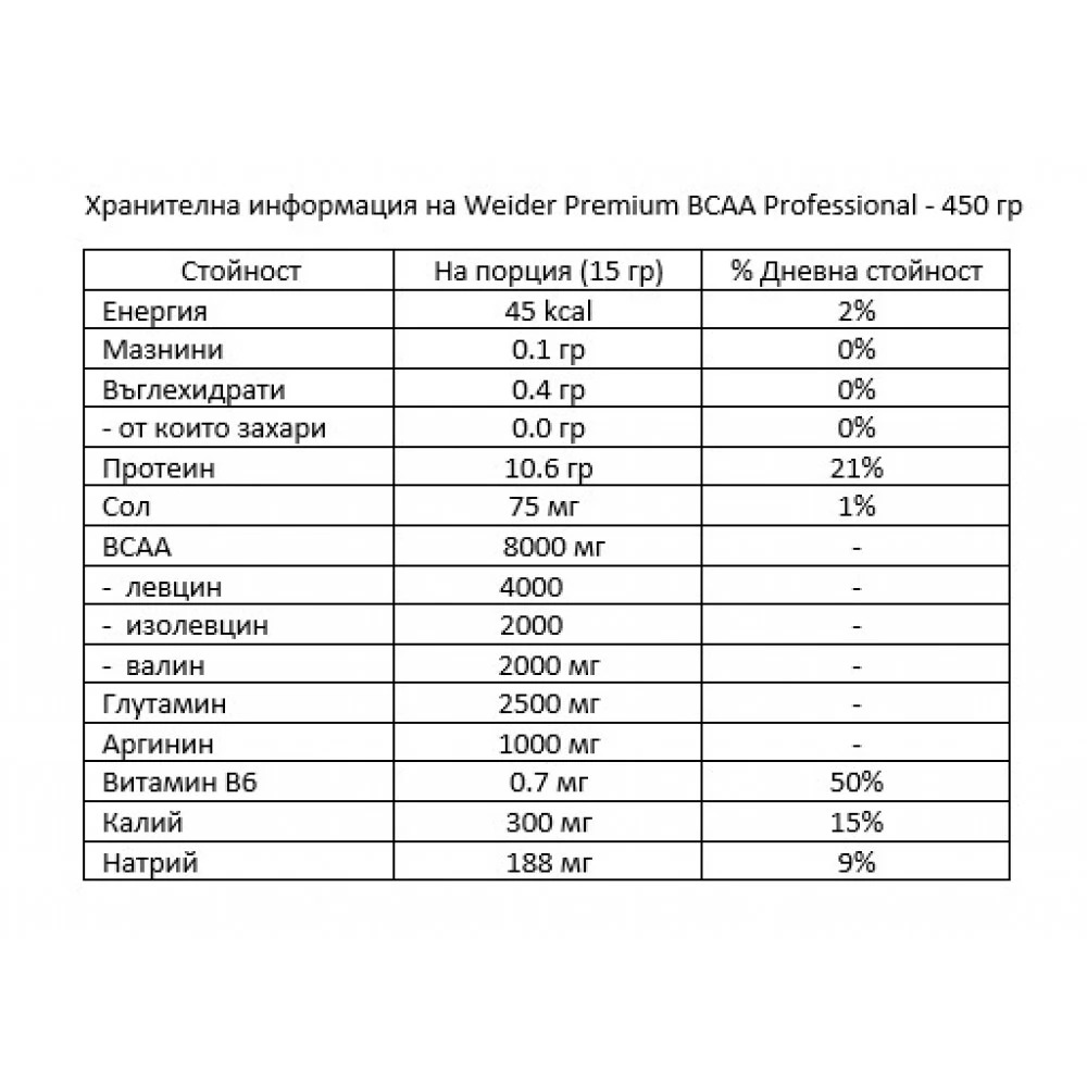 Информация за Premium BCAA Professional – 450 гр