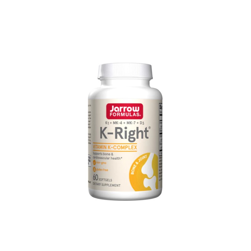 Jarrow Formulas® K-Right® е комбинация от три форми на витамин K: MK-7, MK-4 и K1, плюс витамин D3 за поддържане на здравето на костите и сърдечно-съдовата система. Витамин K функционира в карбоксилирането на остеокалцин, който свързва калция в костите. Витамин D3 функционира при производството на остеокалцин. Jarrow Formulas® MK-7 е продукт на естествена ферментация с помощта на Bacillus subtilis subsp. natto. MK-7 (менахинон-7) - биоактивна форма на витамин K2 от Natto и се усвоява много по-добре от K1 от спанак. Начин на употреба: Приемайте по 1 гел-капсула на ден или според указанията на вашия квалифициран медицински специалист.